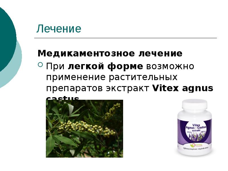 При легкой форме возможно применение растительных препаратов экстракт Vitex agnus castus